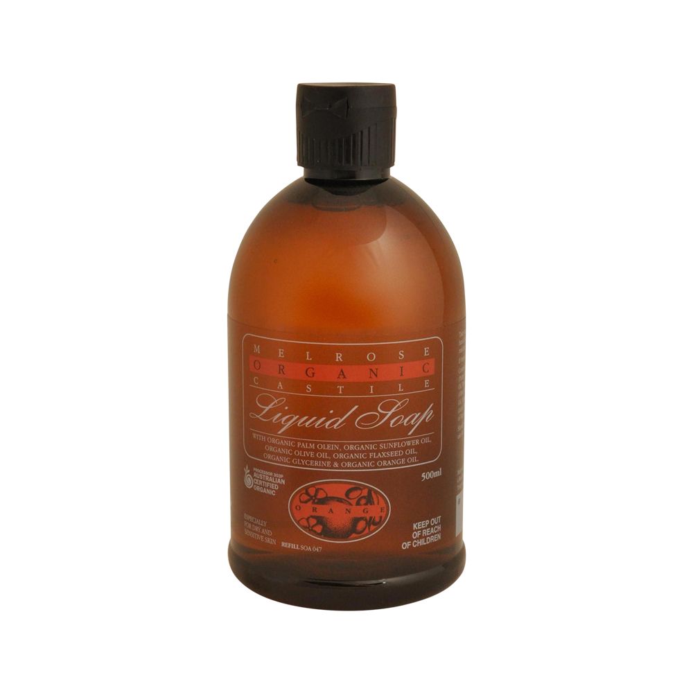Melrose Organic Castile Soap Orange Pump Refil 500mL is pure and simple. It can be used as an everyday body wash, as a gentle cleanser for hands or even for cleaning laundry. Castile Soap is especially great for dry, itchy, irritated or sensitive skin; it also works well on oily skin and acne by helping balance oil production and preventing the clogging of pores.