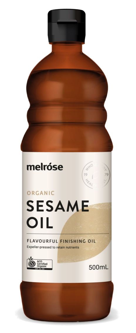 Melrose Organic Sesame Oil is pressed from raw sesame seeds giving it a lighter mild sesame flavour adding a subtle nuttiness to dishes (unlike dark sesame oil that is pressed after toasting the seeds and has a more intense sesame flavor).