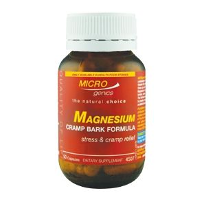 MICROgenics® Magnesium & Cramp Bark formula is a specially formulated combination of magnesium along with the cofactors Zinc & Vitamin B6, plus the traditional herb Cramp Bark. Magnesium plays an important role in muscle contraction and nerve conduction, it may be of benefit to people who suffer from nocturnal leg cramps and may also help to provide relief of sleeplessness associated with restless legs. Magnesium in combination with Vitamin B6 may help relieve mild premenstrual anxiety symptoms and Vitamin B6 may also help to relieve other premenstrual symptoms including irratability, mood swings, tiredness and fatigue. This formula provides three forms of magnesium to offer broad bioavailability of this important nutrient.