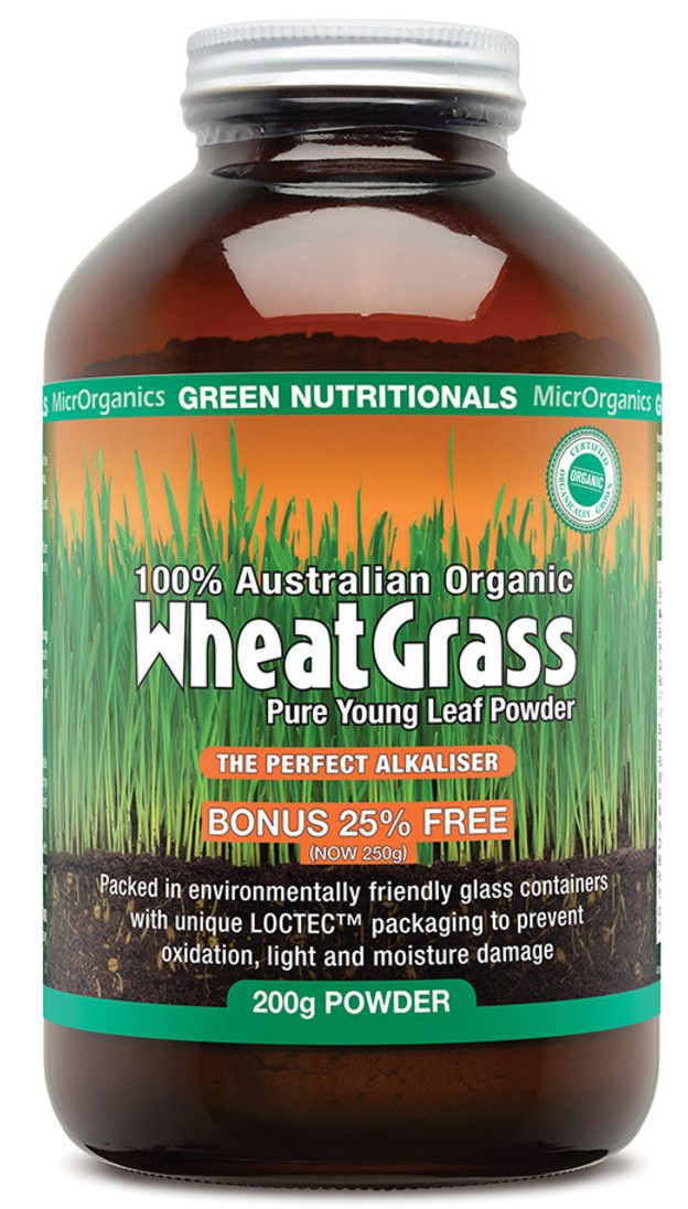 Green Nutritionals Australian Organic WHEATGRASS is made using 100% organic young leaf wheatgrass from the mineral-rich, certified organic soil on the banks of the mighty Murray River in Northern Victoria. Read more