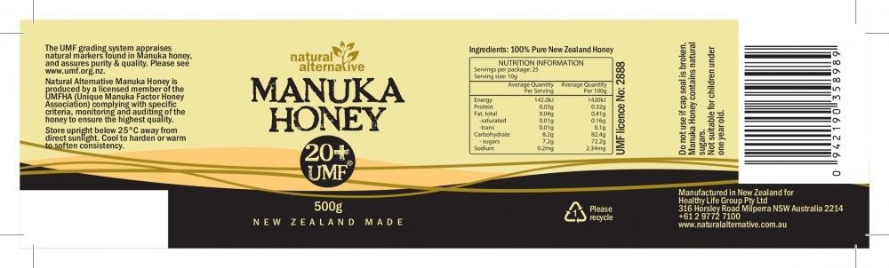 Natural Alternative Manuka Honey is produced by a licensed member of the UMFHA (Unique Manuka Factor Honey Association) complying with specific criteria, monitoring and auditing of the honey to ensure the highest quality.