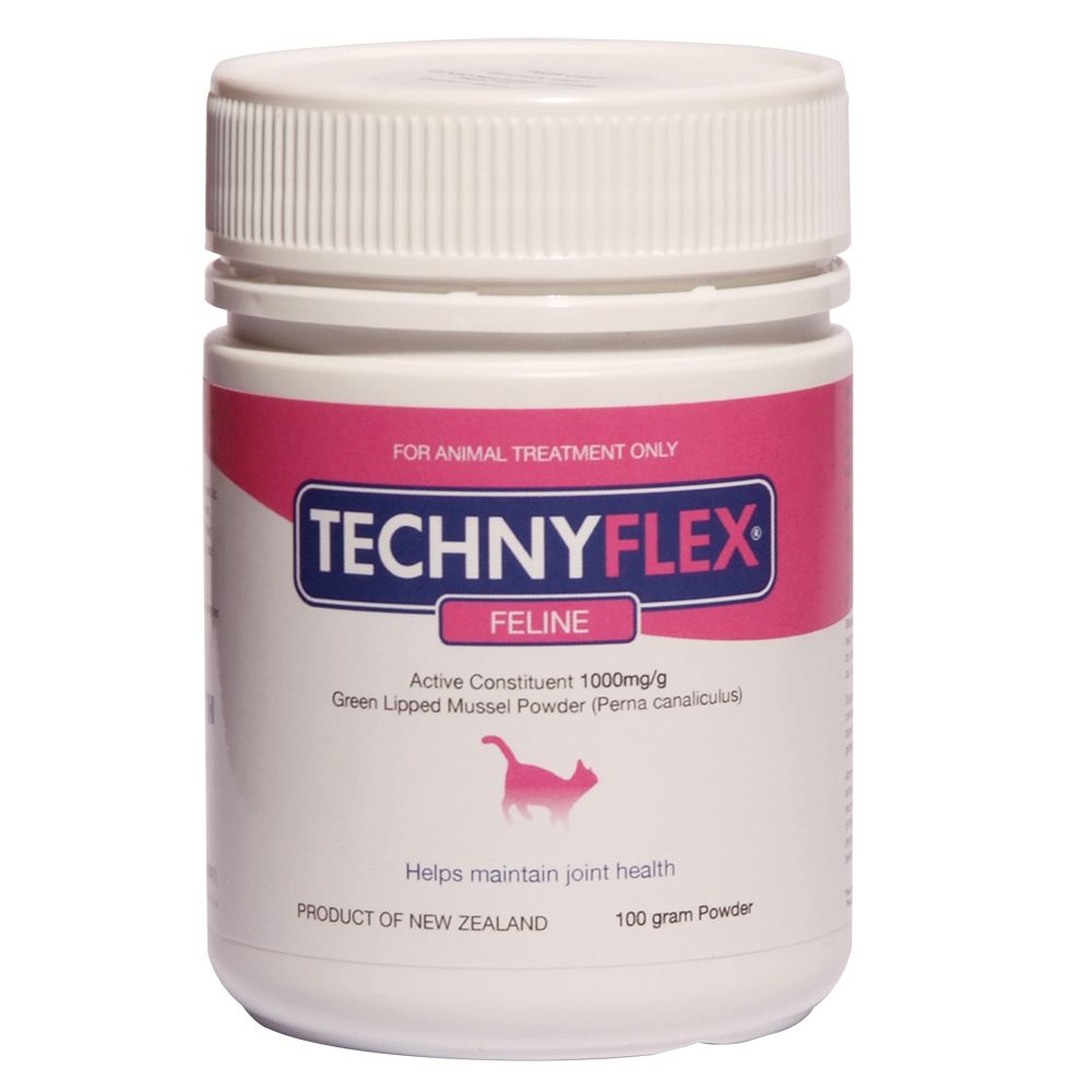 Technyflex® Feline is derived from 100% Enriched NHNZ™ Green lipped Mussel powder. It is 100% natural and high in Glucosamine, Chondroitin sulphate and Essential Fatty Acids (omega 3 & 6). It does not contain any additives and the raw materials are specially processed to enhance wellbeing of your feline friend.