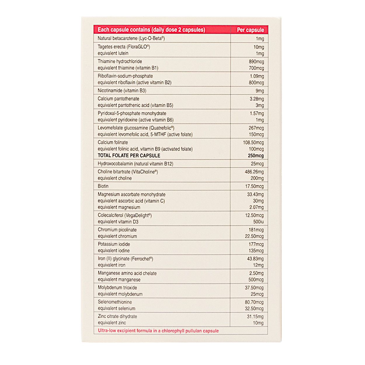 | TOTAL FOLATE PER DAILY DOSE | 500mcg |