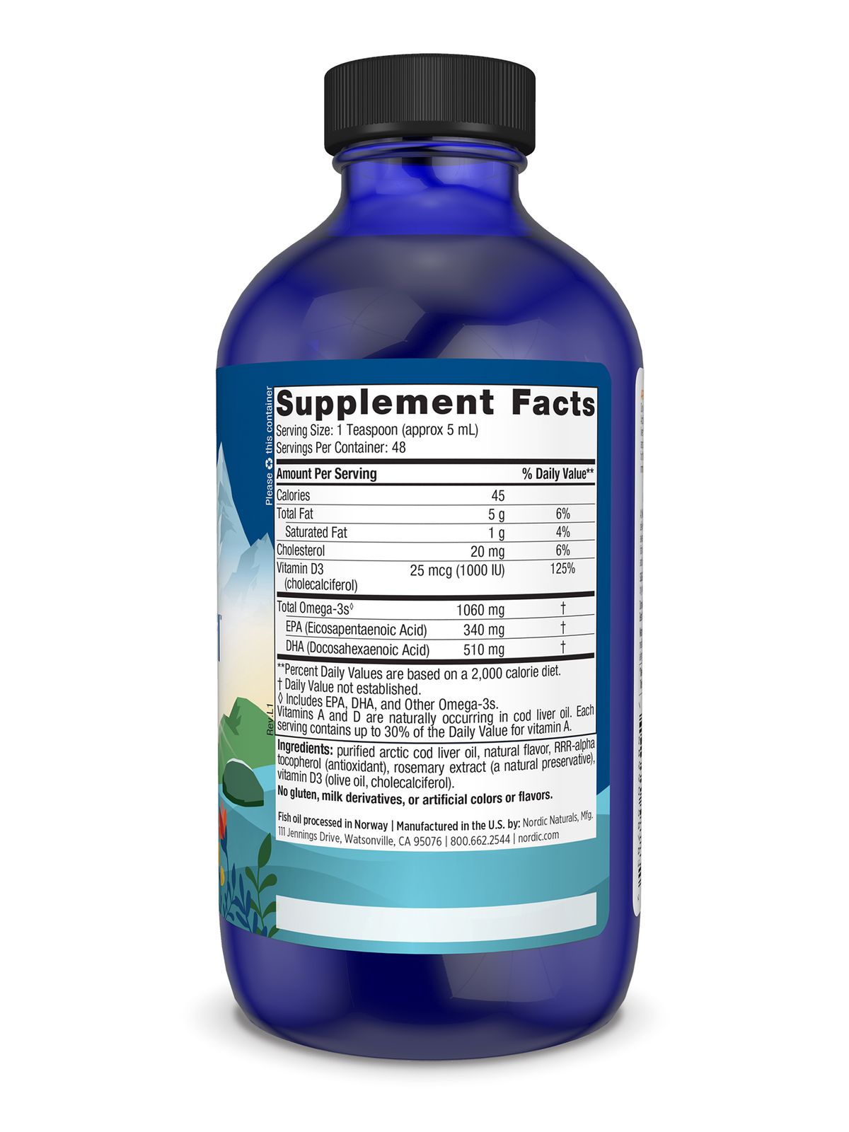 Sustainably sourced in Norway, Arctic-D Cod Liver Oil™ includes the Nordic Natural award-winning cod liver oil formula with 25 mcg (1000 IU) added natural vitamin D3.