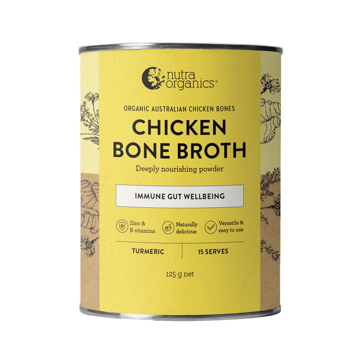 Nutra Organics Chicken Bone Broth Turmeric is naturally nourishing with curcumin, zinc & B vitamins.