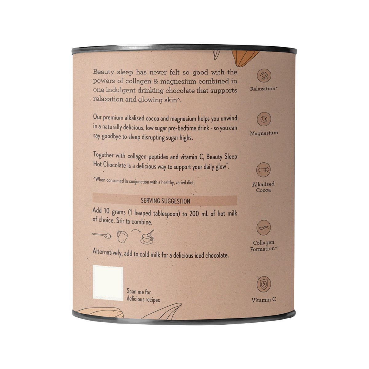 Together with Collagen peptides and Vitamin C, Beauty Sleep Hot Chocolate is a delicious way to support your daily glow^.