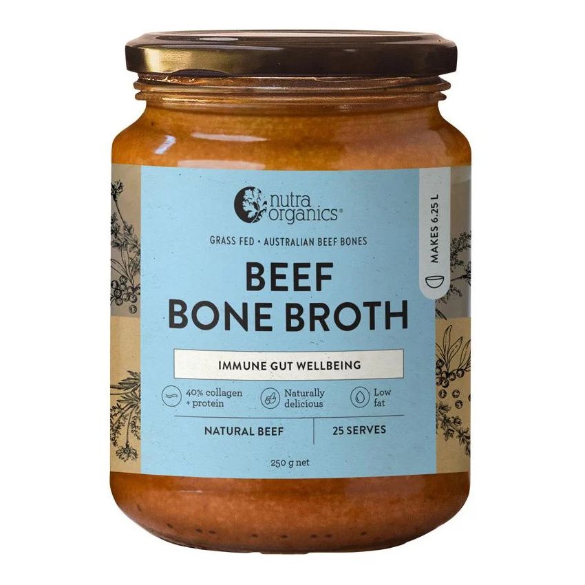 Using Australian grass fed beef bones, Nutra Organics broths are pressure cooked for maximum nutrients and flavour - a delicious way to support your immunity and gut wellbeing, and a nourishing alternative to beef stock for cooking.