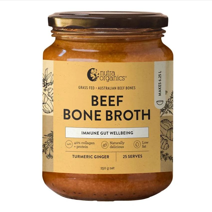 Using Australian grass fed beef bones, Nutra Organics broths are pressure cooked for maximum nutrients and flavour - a delicious way to support your immunity and gut wellbeing, and a nourishing alternative to beef stock for cooking.