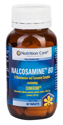 Nutrition Care Nalcosamine BD 60 Tablets - $30.50 - is an innovative formulation combining glucosamine sulphate with Cumerone®, a highly active extract of curcumin (from Curcumin longa Rhizome). By impeding the proteolytic breakdown of macromolecules that lead to cartilage degradation, curcumin allows glucosamine to stabilise and nourish existing cartilage. Read more