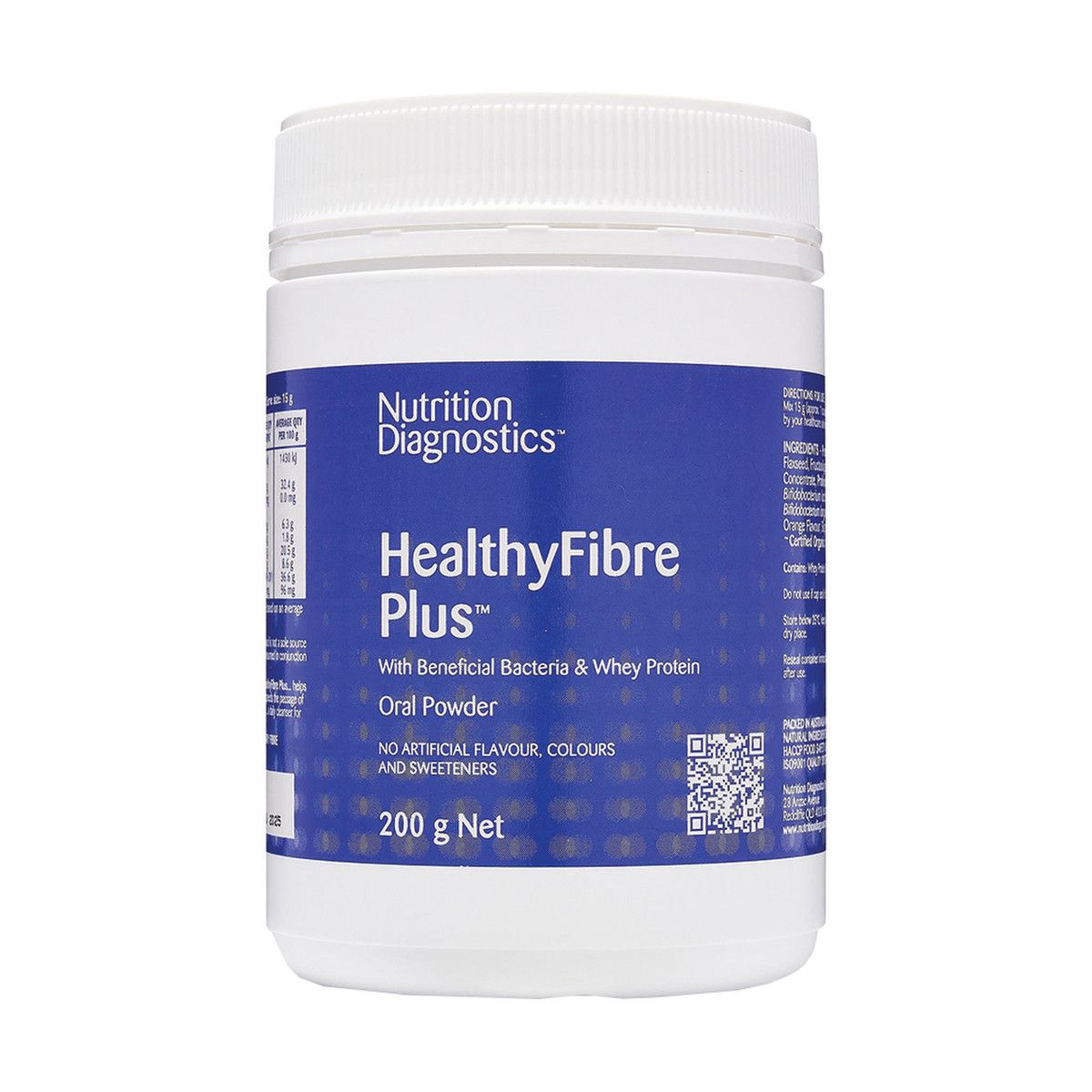Nutrition Diagnostics HealthyFibre Plus is a certified organic, easy-to-use, pleasant-tasting high fibre powder with beneficial bacteria, whey protein, L-glutamine, and slippery elm.