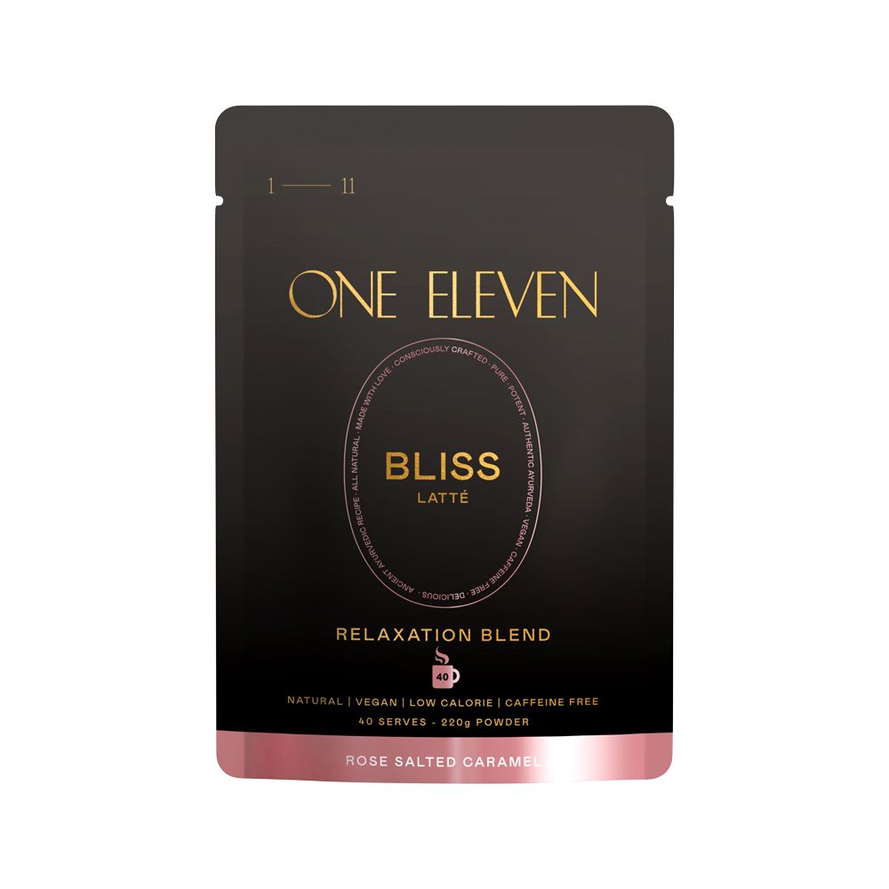 One Eleven Bliss Latte is a potent, pure and natural blend of Ayurvedic herbs that help restore balance and relaxation, brought to you from the most ancient and highly respected cultures on earth. Blended with natural rose and salted caramel notes into a smooth, creamy latte.