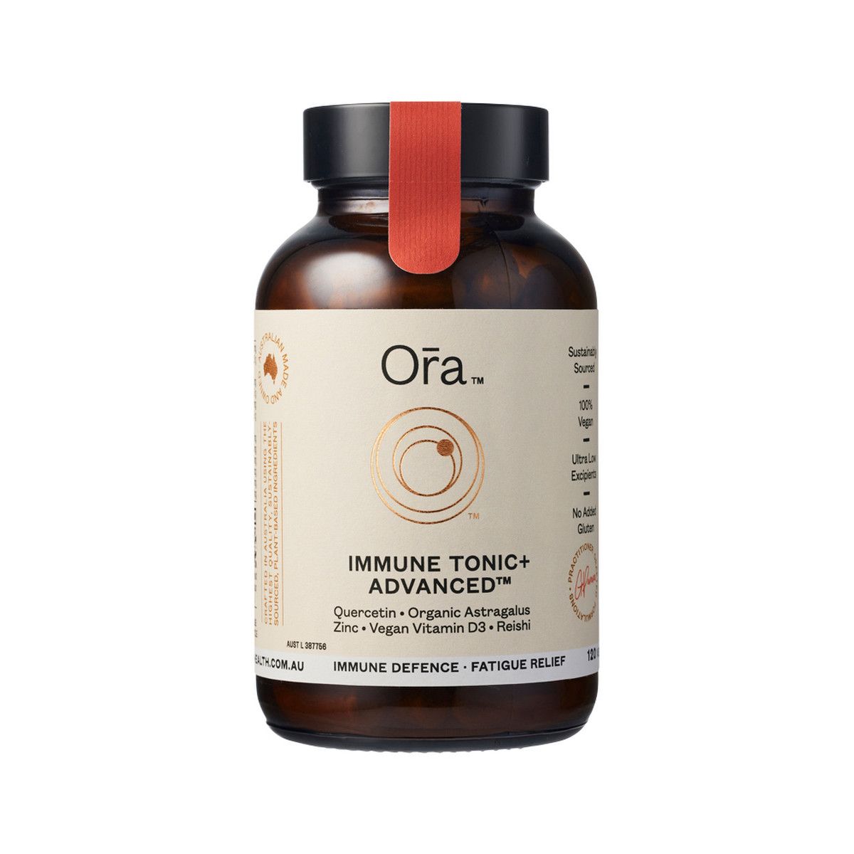 Ora Immune Tonic+ Advanced is a vegan-friendly, high potency immune tonic with organic Astragalus, Siberian ginseng, Quercetin, Zinc, Vegan Vitamin D3, medicinal herbs and Reishi mushroom to support the immune system to fight illness, relieve fatigue and increase vitality.