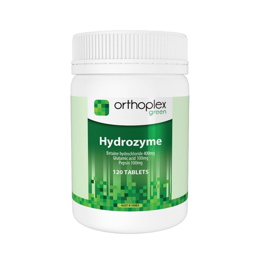 Orthoplex Green Hydrozyme supports healthy digestion.Betaine hydrochloride is a source of hydrochloric acid and pepsin is involved in proper digestion.