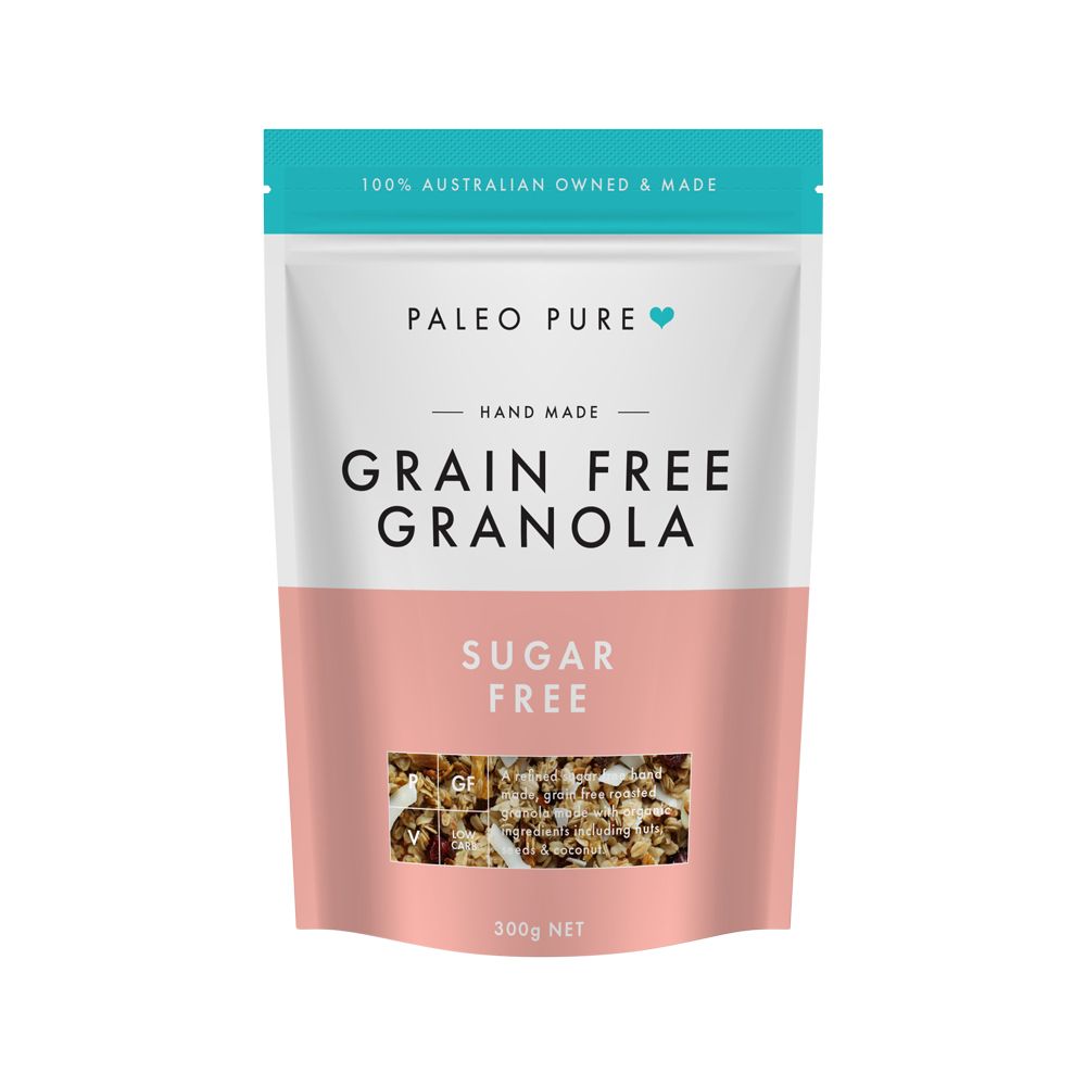 A tweak on our original paleo muesli and now in a compact bag. Sugar Free is our latest and greatest. Made using the same core ingredients as our fruit free muesli, this blend is roasted without any added maple or syrup, making it completely added sugar free. The sugar content you see on the nutritional panel is from naturally occurring sugars inside the nuts and coconut. Our grain free granola makes the perfect accompaniment to berries, yoghurt or sprinkled on top of just about anything. Using carefully chosen nuts & seeds, we then lightly oven bake it, giving it a crunchy texture.