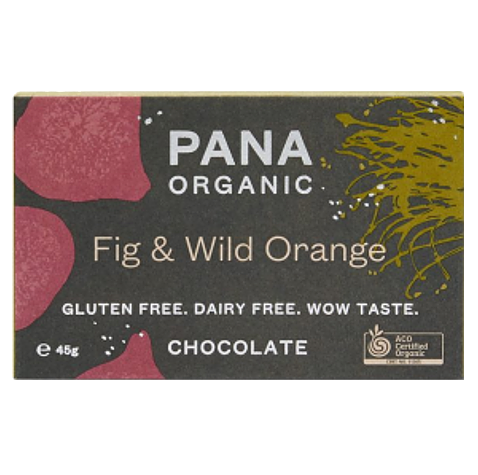 Pana Chocolate Fig + Wild Orange contains 55% raw cacao with fig and wild orange essential oil. Goes well with 3pm.