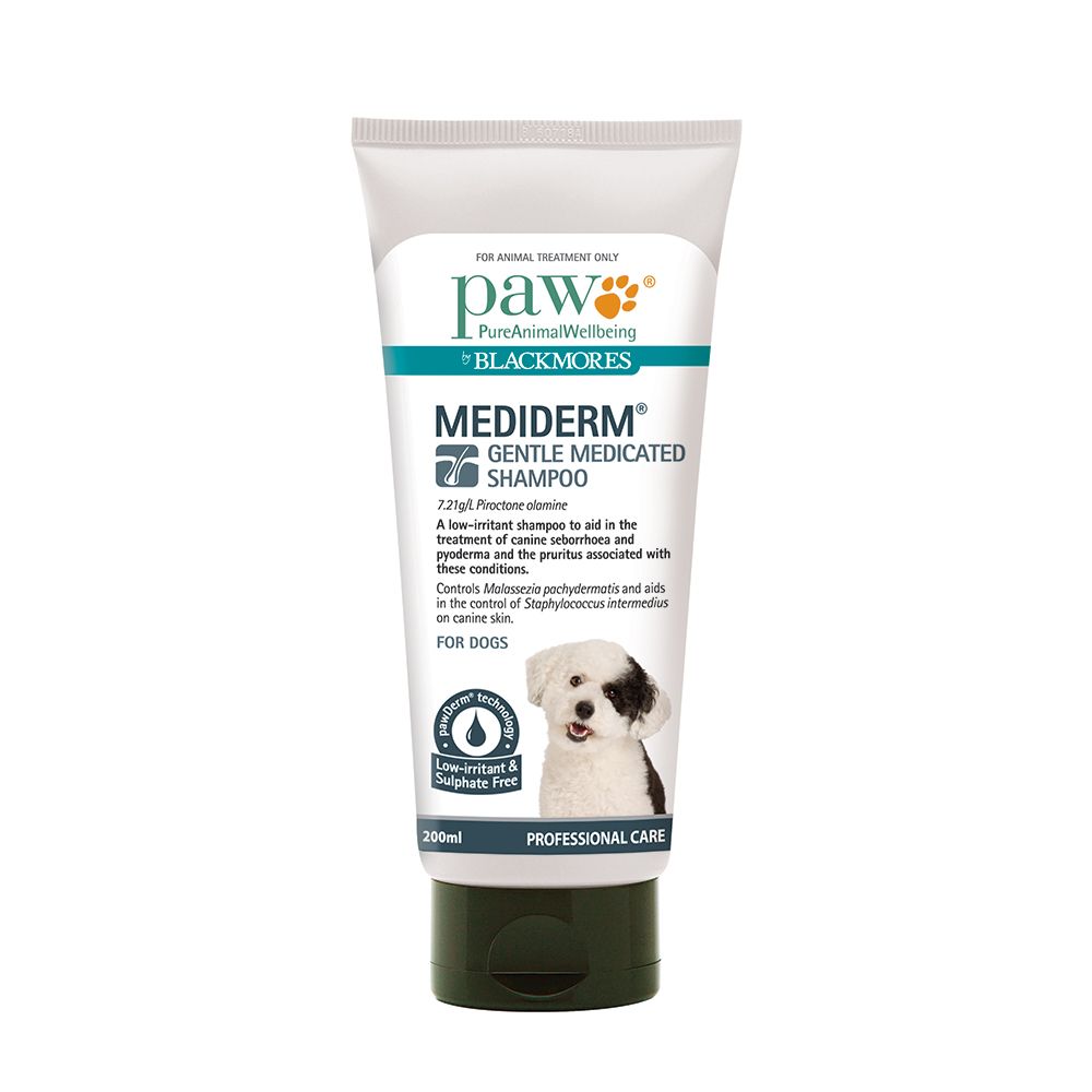 PAW MediDerm® Gentle Medicated Shampoo is an effective low-irritant, antibacterial and antifungal shampoo that is gentle on the skin. Combining, Piroctone Olamine, a veterinary active, with pawDerm® sulphate free technology. Read more
