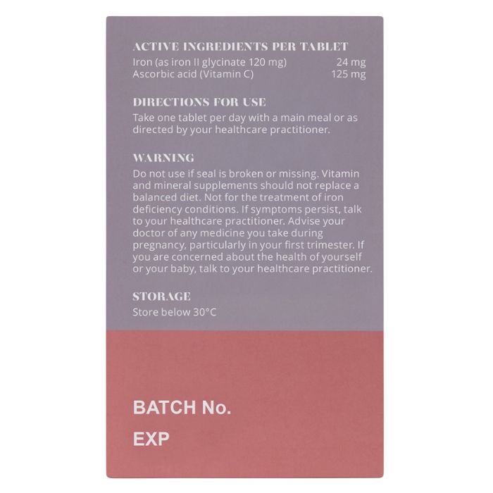 Our formula utilises iron II glycinate, an active form of iron that is easily absorbed and tummy friendly. The addition of vitamin C further supports absorption of dietary iron in the body.