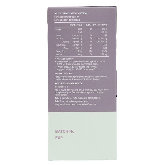 Thoughtfully formulated with clinically tested Sunfibre®, white chia seed powder and psyllium husk, this unflavoured, easy to drink blend of prebiotics and fibre promotes a healthy gut, regular bowel function and helps you feel fuller for longer.