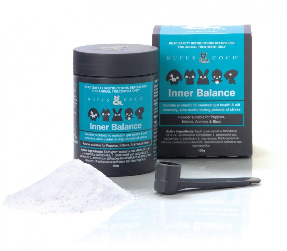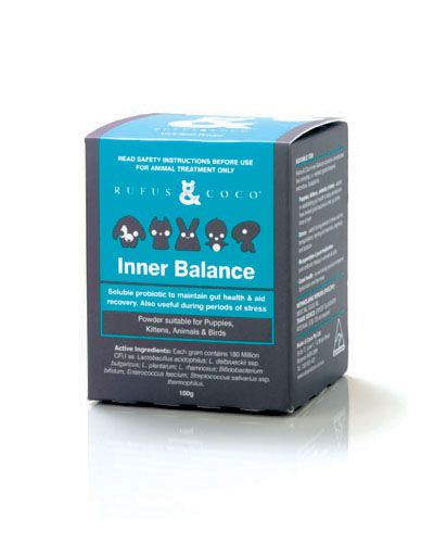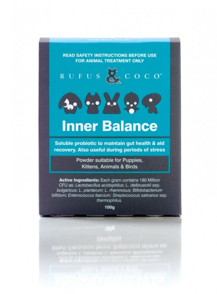 Rufus & Coco Inner Balance is a soluble probiotic to maintain gut health & aid recovery. Also useful during periods of stress.Lasts up to twelve months longer if stored in the fridge. Read more