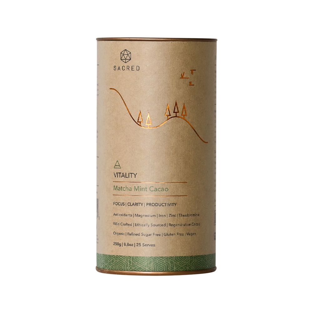 Sacred Vitality contains Matcha and Mint. Try Sacred Vitality as the ultimate coffee replacement, your 3pm pick me up or whenever you need to focus and get things done... without the crash! Read more