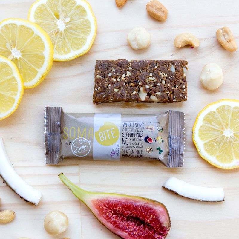 Featuring Australian superfoods Lemon Myrtle & Kakadu Plum, Soma Bite Fig & Wild Citrus is sweet, coconutty and full of zest. A nourishing blend of juicy figs, crunchy nuts, coconut and native citrus spices.