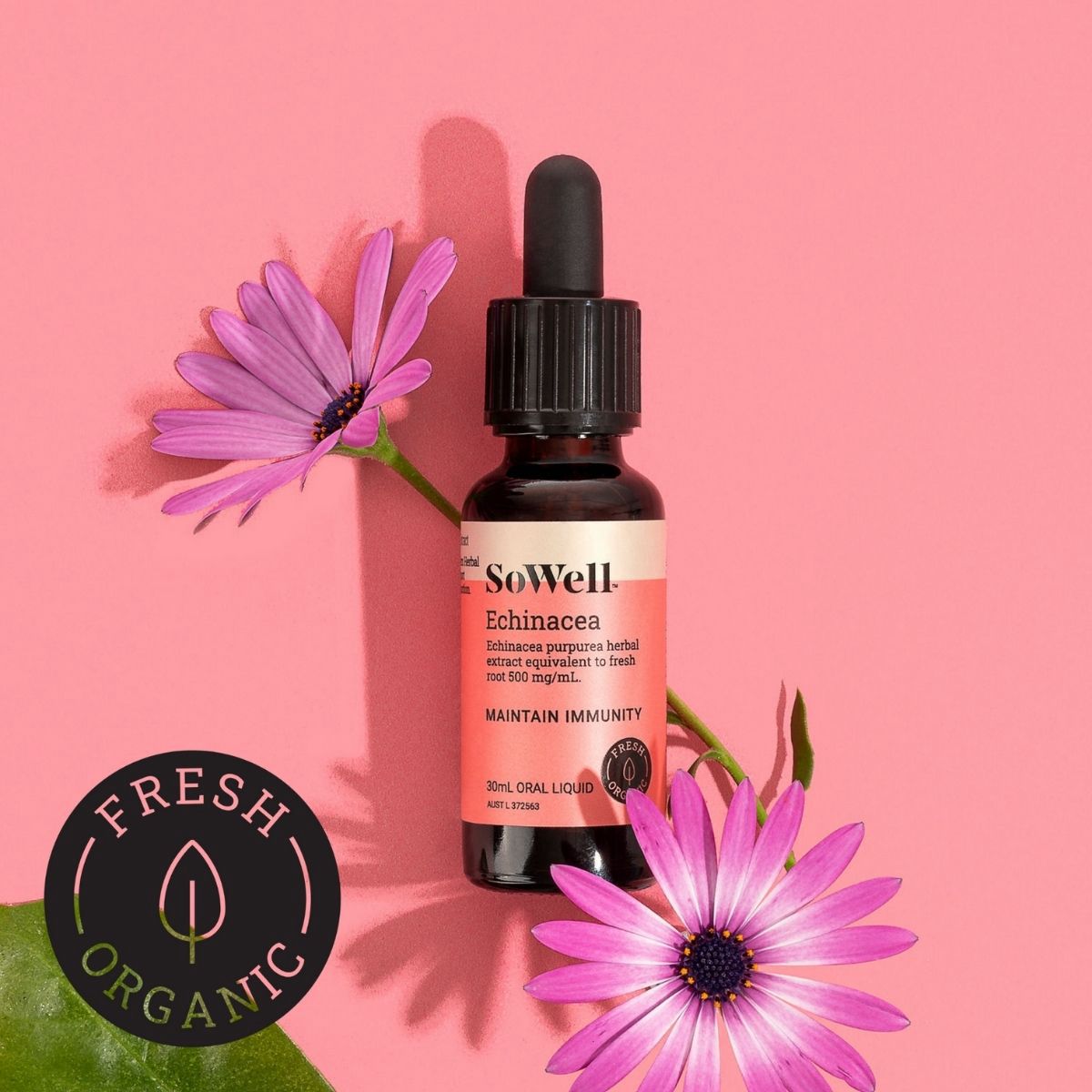 SoWell's seed to bottle herbal extraction process commences within 24 hours of the organic Echinacea purpurea being harvested, capturing the fresh root active medicinal constituents in a concentrated oral liquid form, size 30ml.