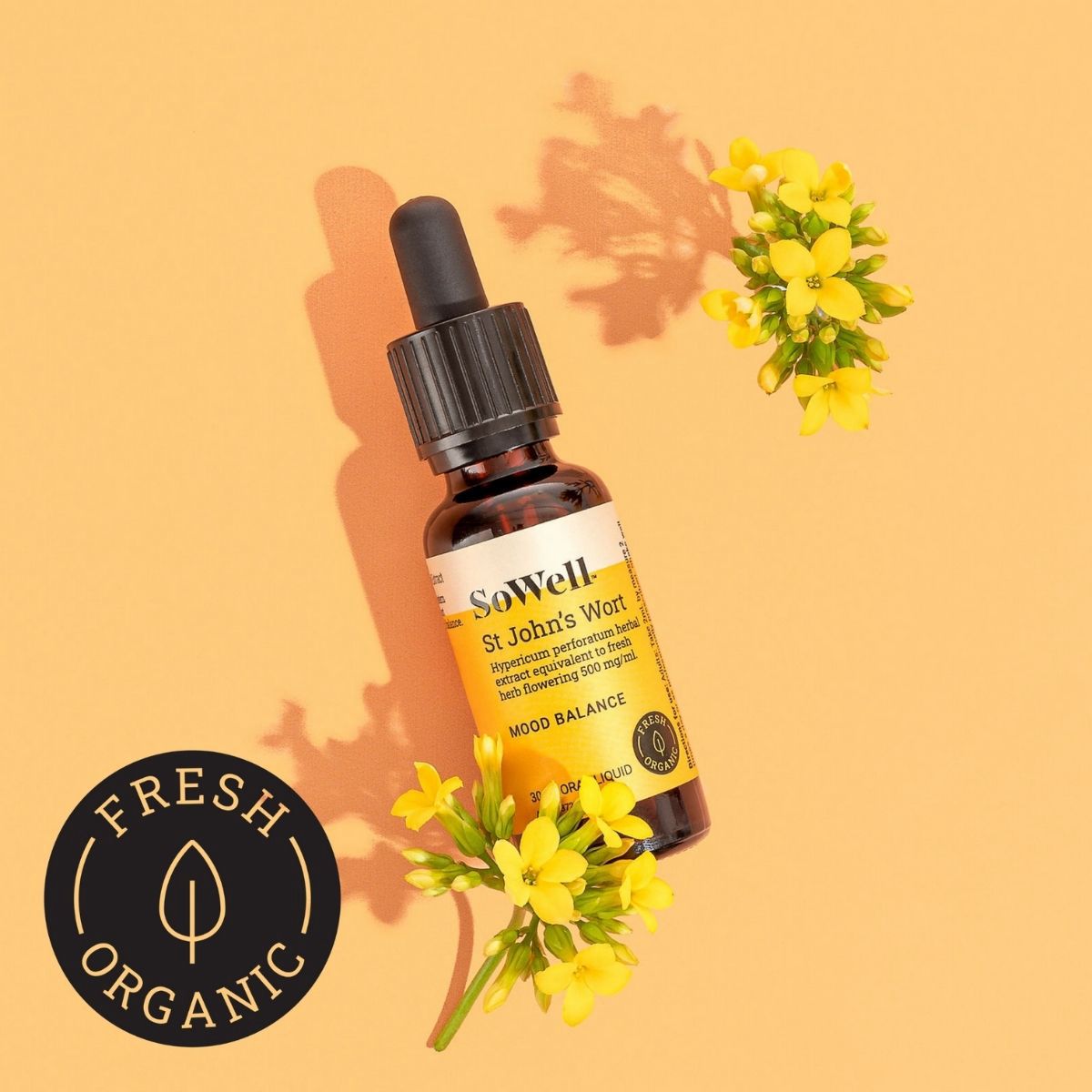 SoWell prepare their St John’s Wort herbal extract from the fresh herb flowering of certified organic Hypericum perforatum which is grown, harvested, and extracted on an organic and biodynamic farm. SoWell believe fresh plant herbal extracts have an unrivalled vibrancy, and their approach delivers unparalleled traceability.