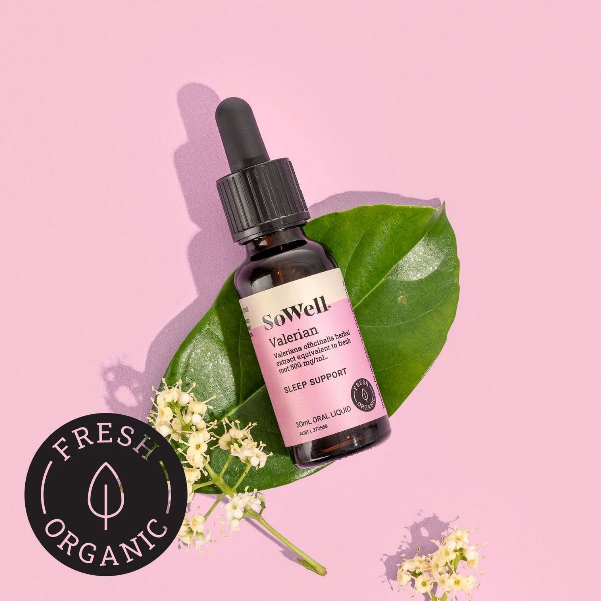 SoWell's seed to bottle herbal extraction process commences within 24 hours of the Valeriana officinalis being harvested, capturing the fresh root active medicinal constituents in a concentrated oral liquid form, size 30ml.