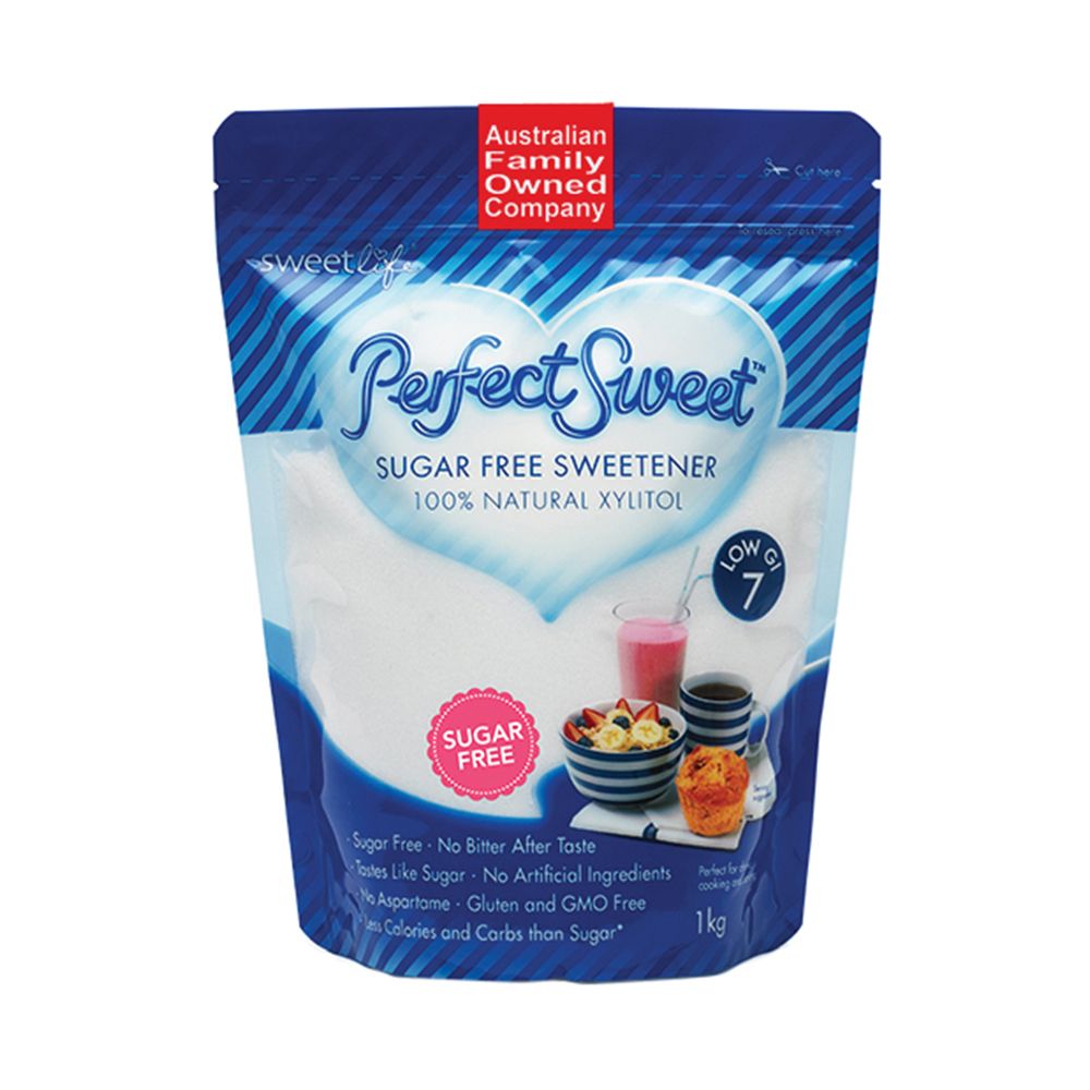 Perfect Sweet™ is a 100% natural, sugar free sweetener with no bitter aftertaste. Perfect Sweet™ xylitol tastes like sugar, but has no artificial ingredients, no aspartame and less calories and carbs than sugar. Gluten and GMO free with a low GI of 7. Perfect for cooking, baking and adding to drinks.