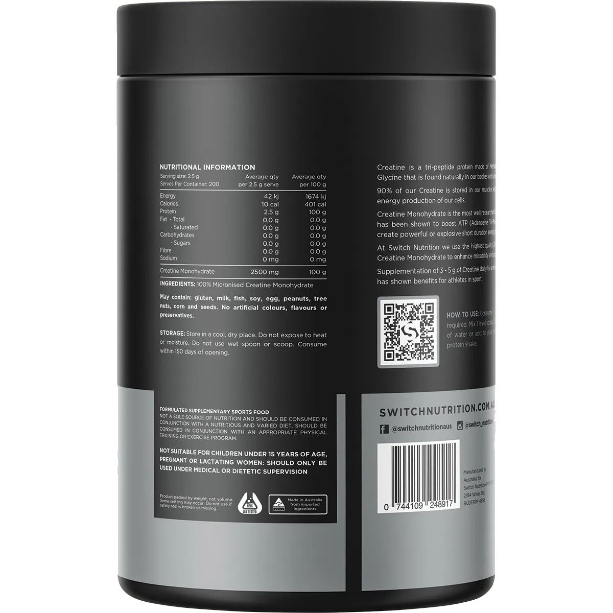 Switch Creatine 100% Pure Micronized Monohydrate | Unflavoured 250g