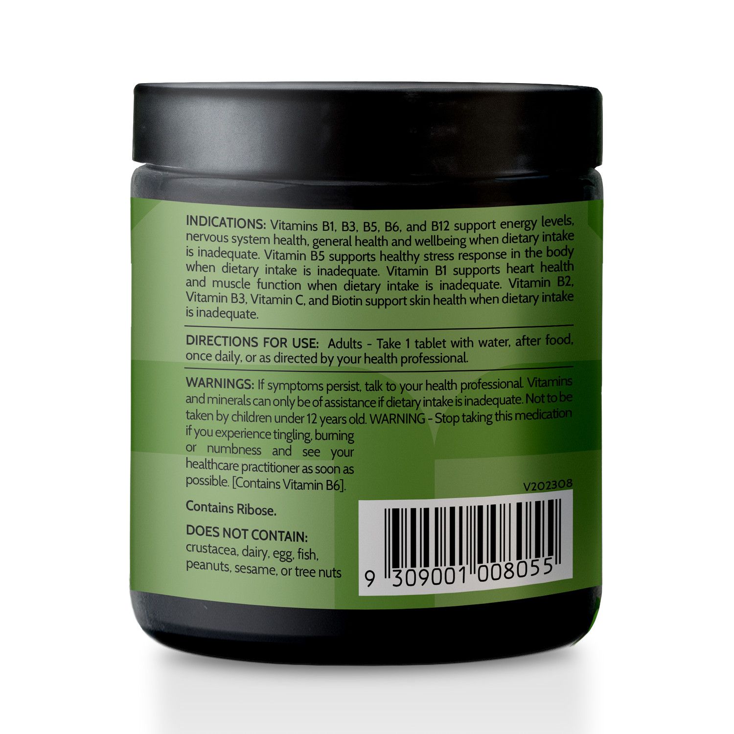 Thiamine Hydrochloride and Riboflavin (Vitamin B1 and B2) join forces to support energy production and maintain optimal energy levels, while Nicotinamide (Vitamin B3) and Nicotinamide Riboside Chloride work synergistically, nurturing your nervous system's health and function.