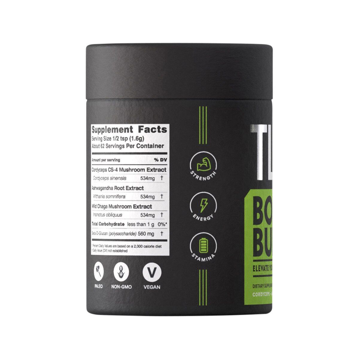 Cordyceps CS-4 Mushroom Extract (Cordyceps sinensis)534mgAshwagandha Root Extract (Withina somnifera)534mgWild Chaga Mushroom Extract (Inonotus obliquus)534mg