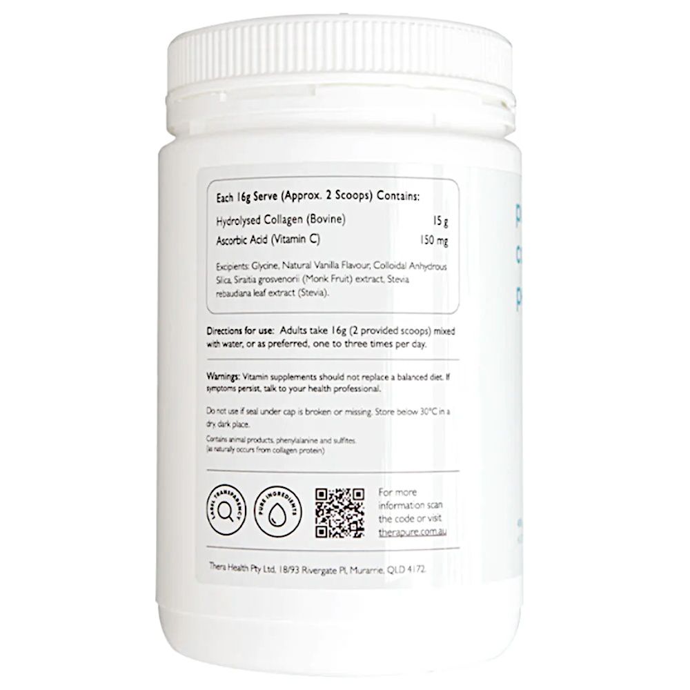 Therapure Pure Collagen Peptides + C can promote healthy skin by supporting collagen formation and skin elasticity. It is produced from pure bovine collagen using a proprietary process to enhance absorption. Read more