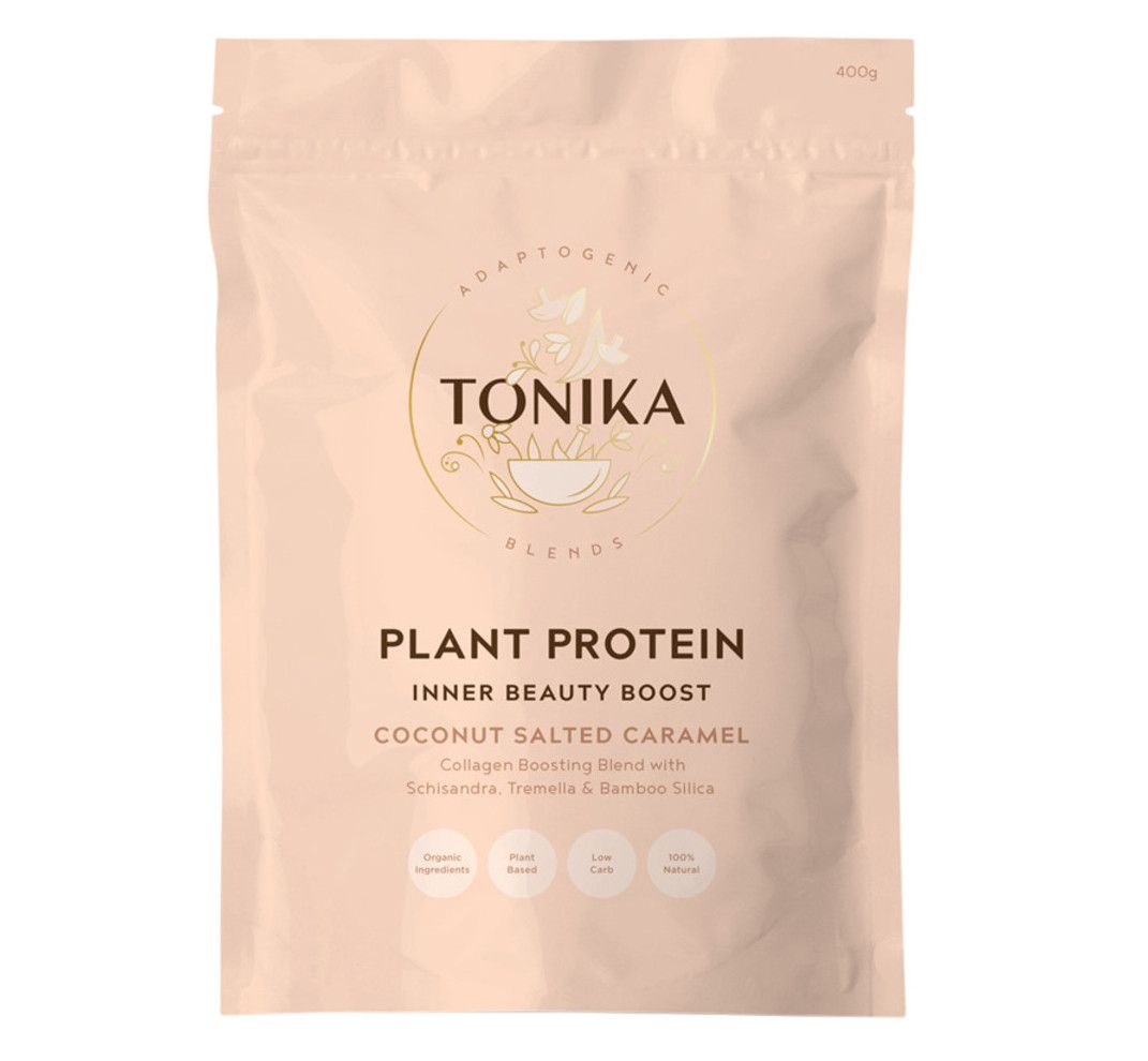 Tonika's collagen boosting plant protein combines sprouted and fermented pea protein with a powerhouse of anti ageing adaptogens, beautifying medicinal mushrooms and probiotics with digestive enzymes for a healthy gut microbiome. Tonika's coconut salted caramel protein will have you drooling from the moment you tear open the bag. It has beautiful caramel notes with a hint of sweetness derived from monk fruit.