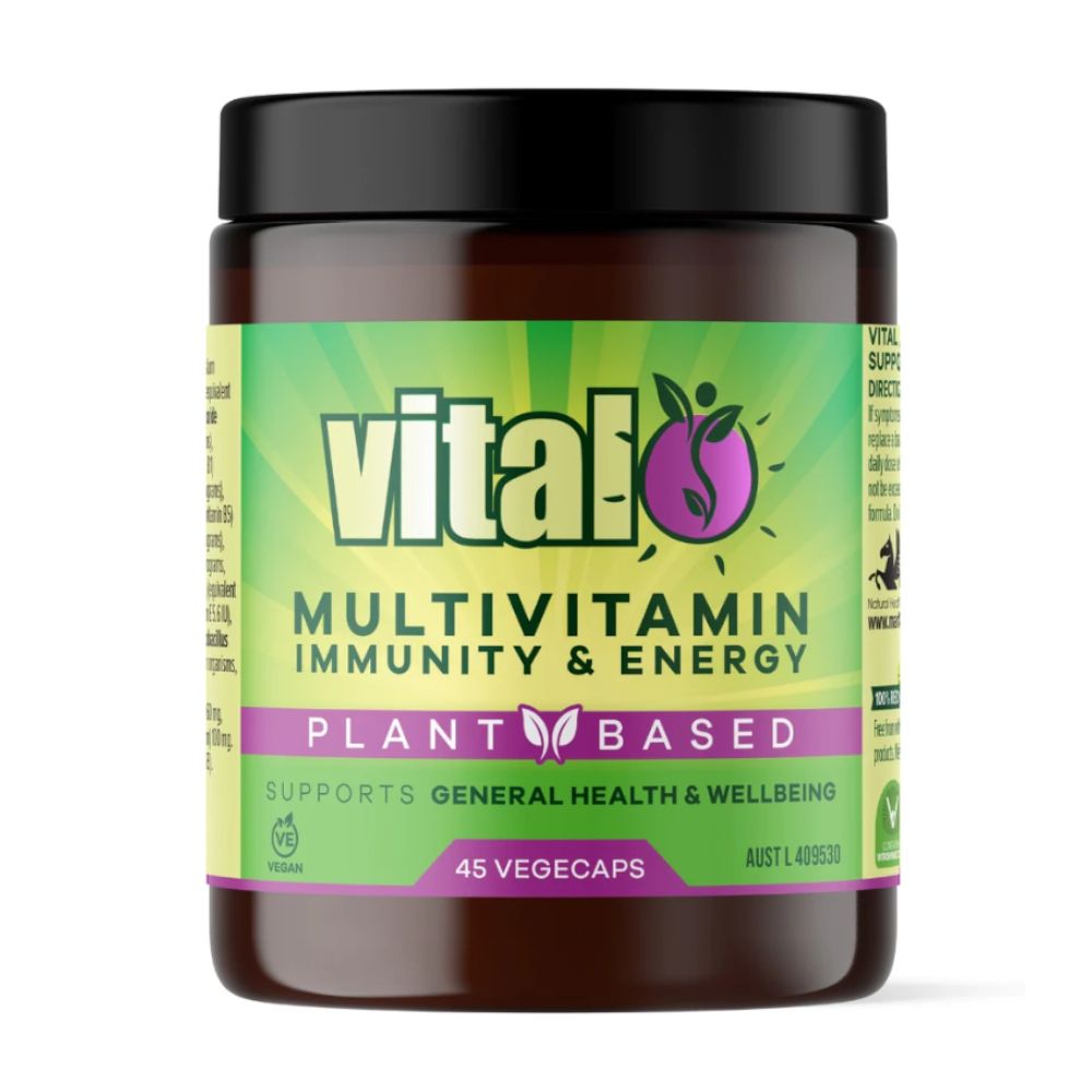 Vital Multivitamin Immunity and Energy contains multivitamins, minerals, prebiotics, postbiotics and herbs to assist with general health and wellbeing.