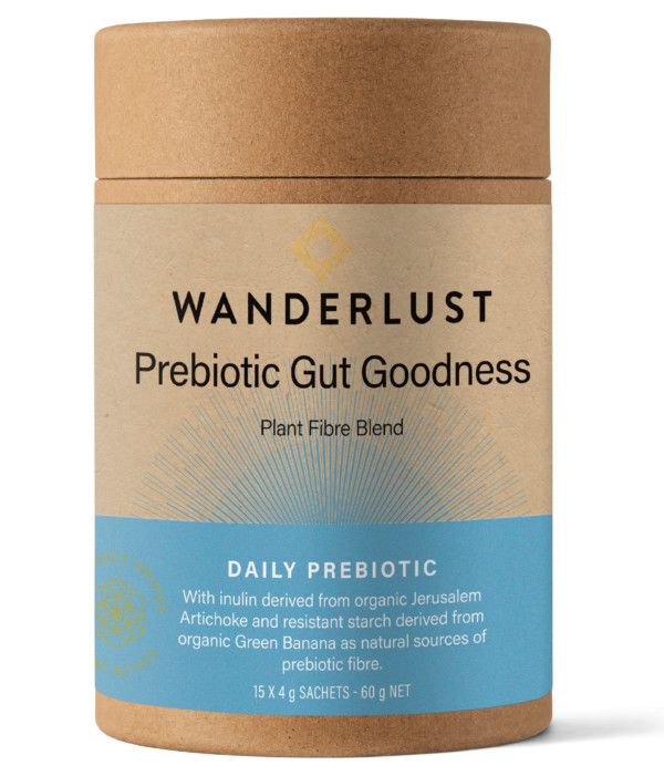 Wanderlust Prebiotic Gut Goodness is a consciously created plant-active fibre blend with organic Jerusalem Artichoke and organic Green Banana as natural sources of prebiotic fibre. Contains inulin & resistant starch, natural sources of prebiotic fibre. Read more