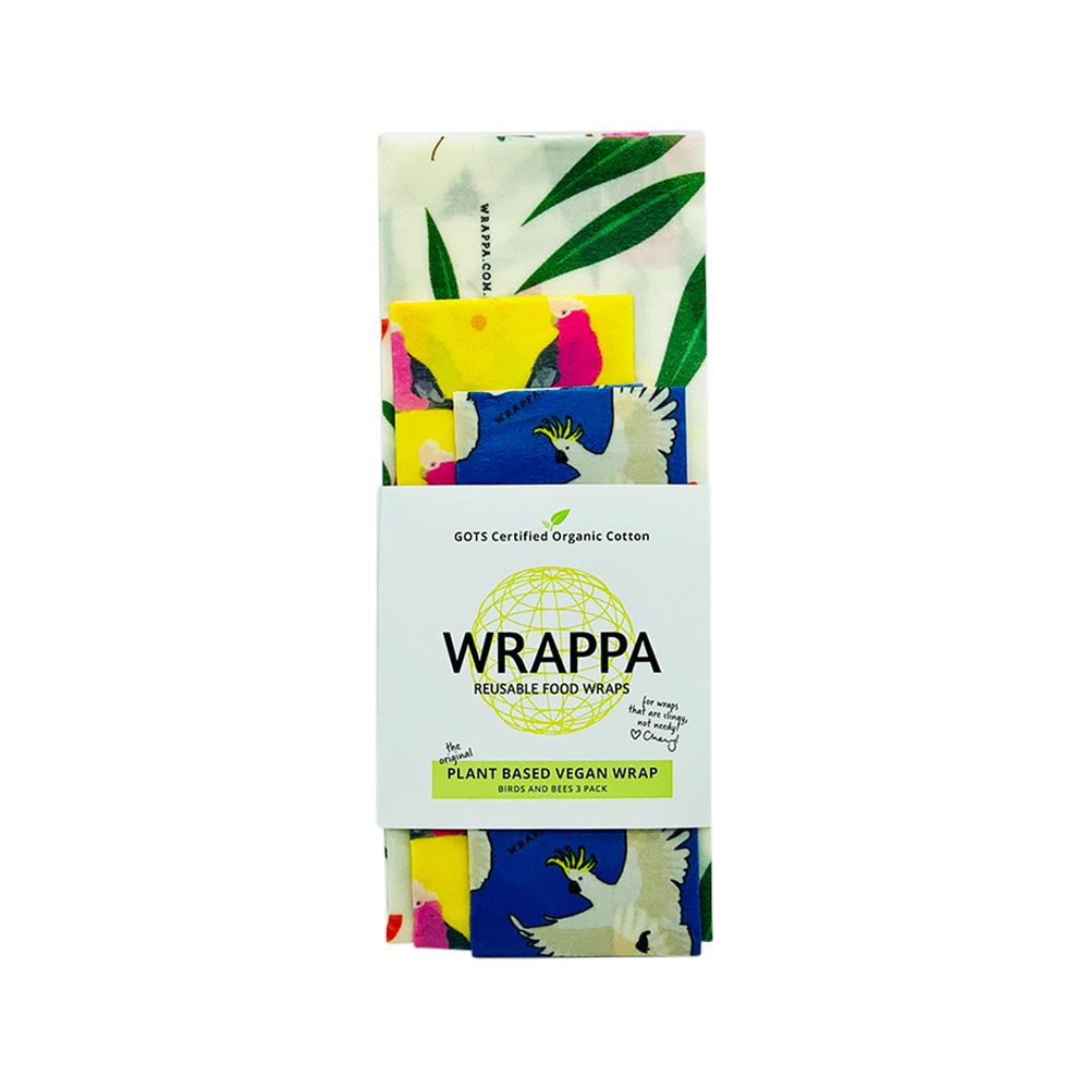 WRAPPA is here to help you bring environmentally friendly essential reusables into your family home. We hand make our own reusable food wraps in our unique plant based wax recipe. Our fabrics are beautifully designed by our team and our love of Australian flora and fauna is featured heavily in our style. The gorgeous Australian Birds and Bees pack is full of Aussie goodness! Galahs, Cockies, Bees, Gum leaves, Kangaroo Paws, Wattle… I don’t know what more we could possibly ask for in a wrap…..