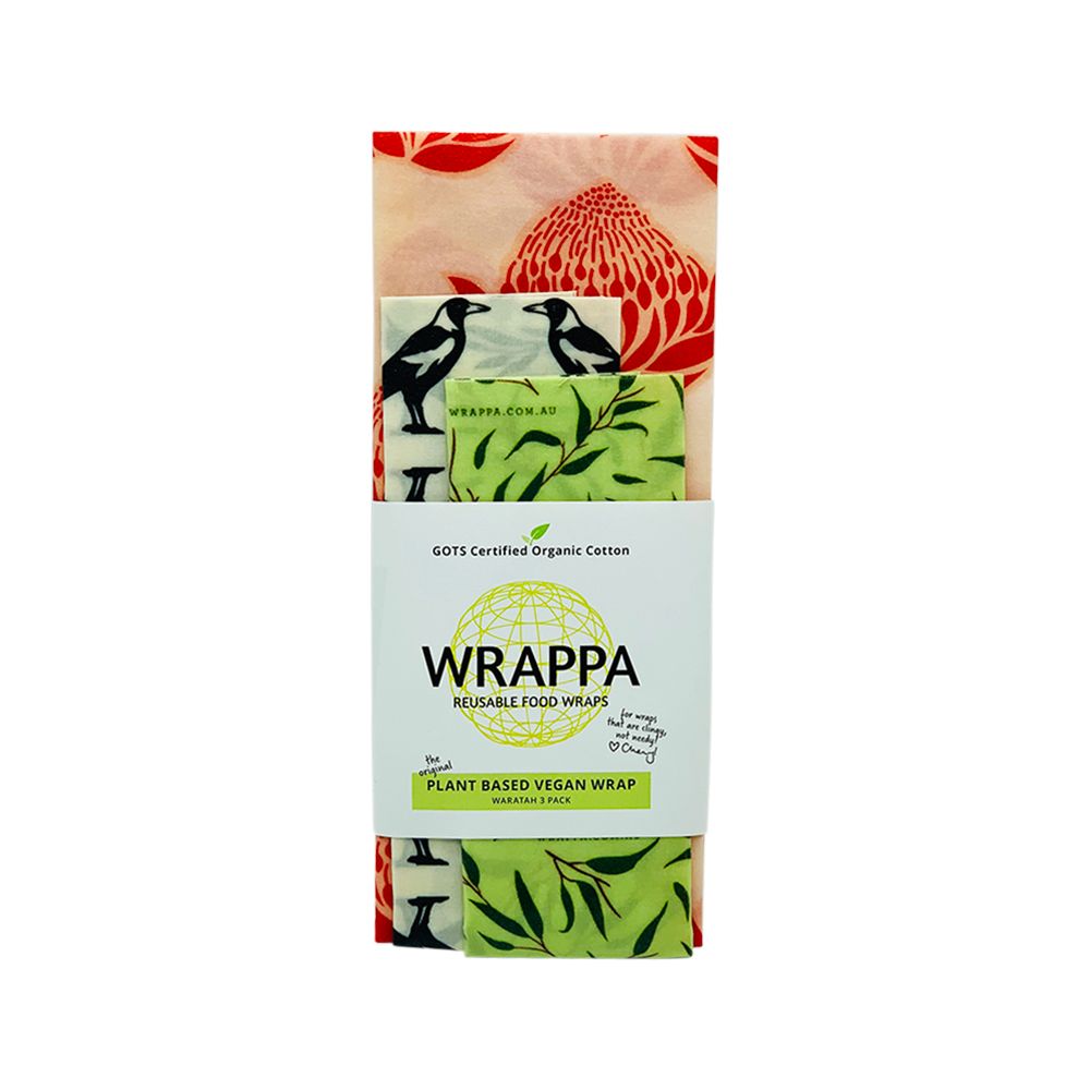 WRAPPA Reusable Food Wrap Vegan Waratah x 3 Pack